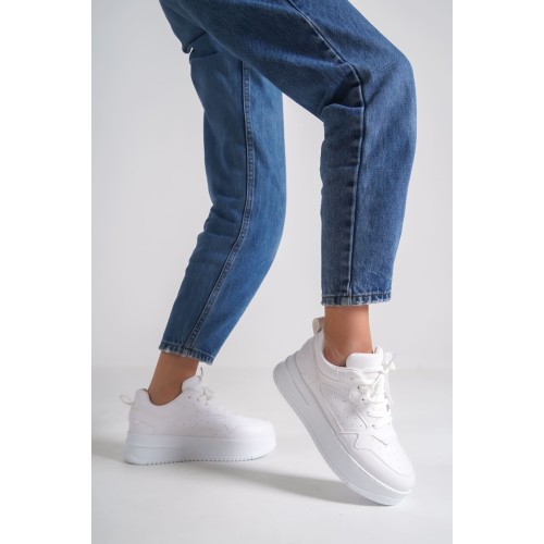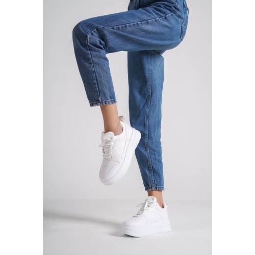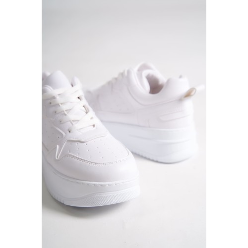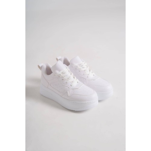 ALESSI Bağcıklı Ortopedik Taban Kadın Sneaker Spor Ayakkabı CBT - Beyaz