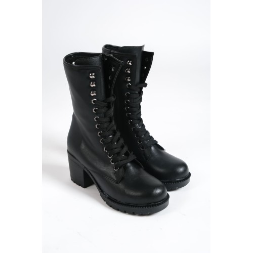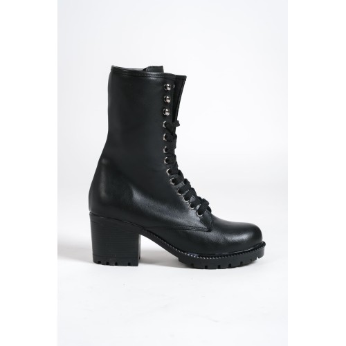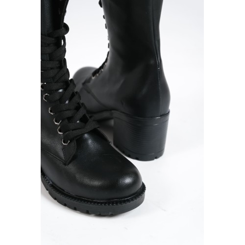 ALDA Bağcıklı Ortopedik Taban Kadın Çizme CST - Siyah