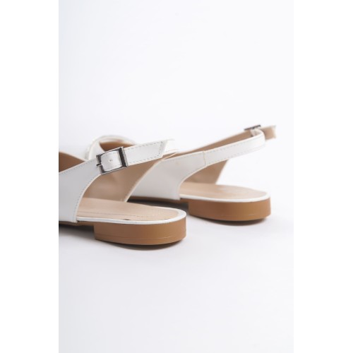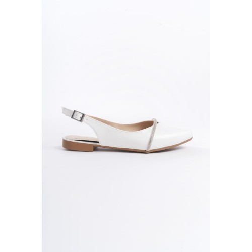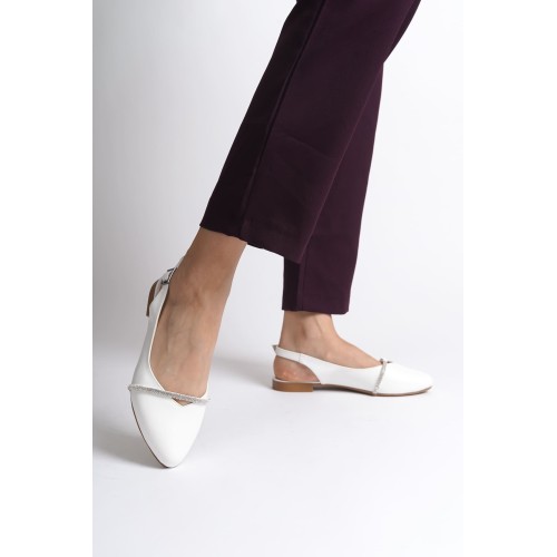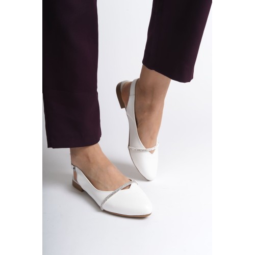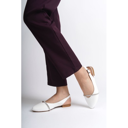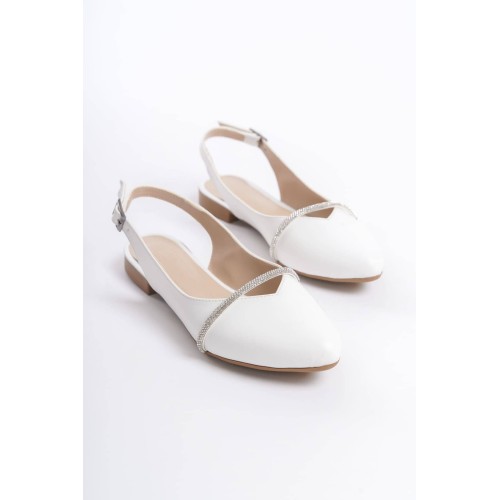 ALLISON Tokalı Ortopedik Rahat Taban Taş Detaylı Kadın Babet Ayakkabı CKT - Beyaz