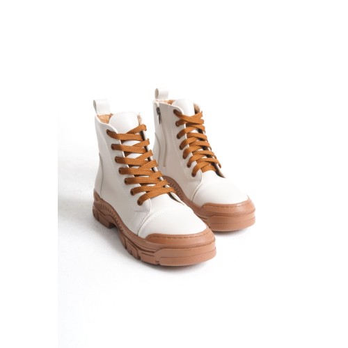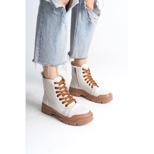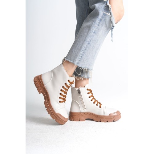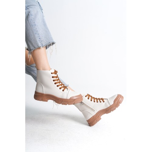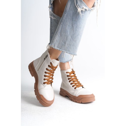 BLOOM Bağcıklı Fermuarlı Ortopedik TabanKadın Bot CTT - Krem