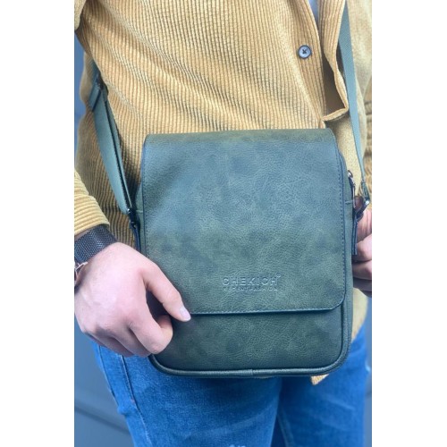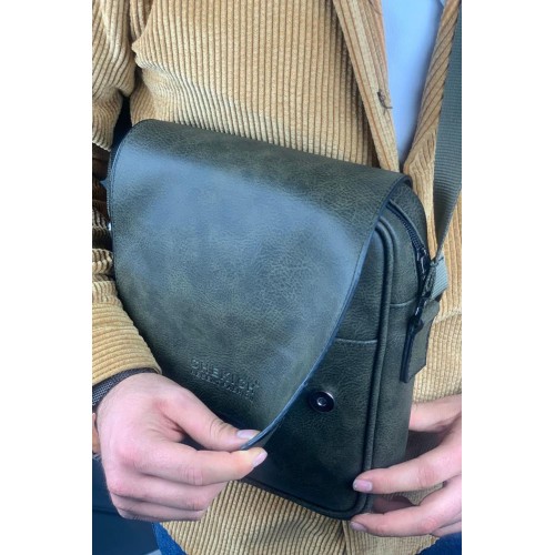 CNT009 - Cilt Deri Erkek Yan Omuz Çantası HAKI