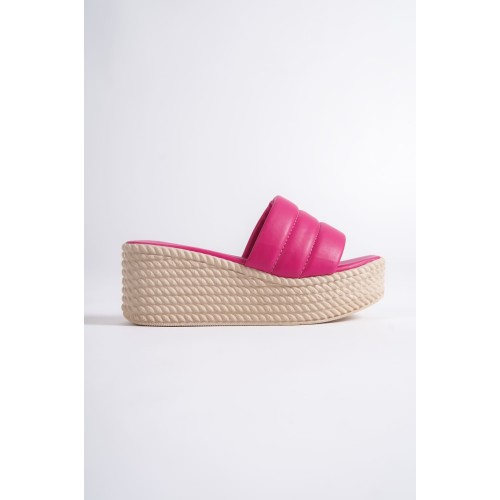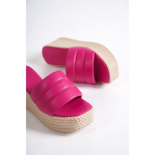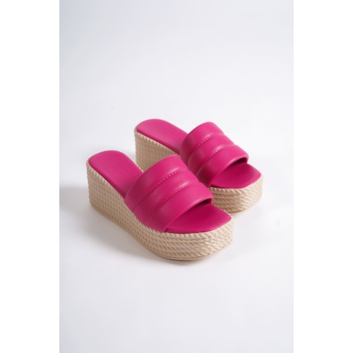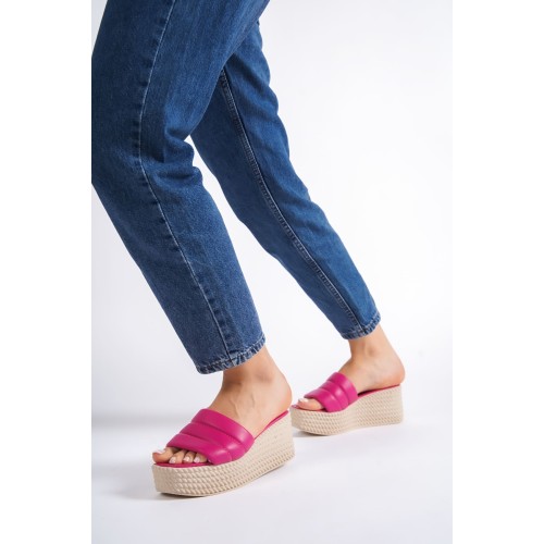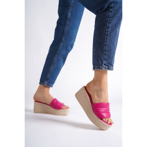 REINA Dolgu Topuklu Ortopedik Taban Hasır Görünümlü Kadın Terlik CKT - Fuşya