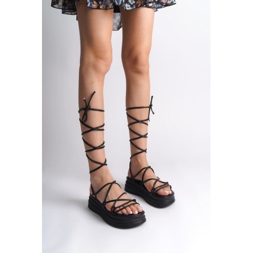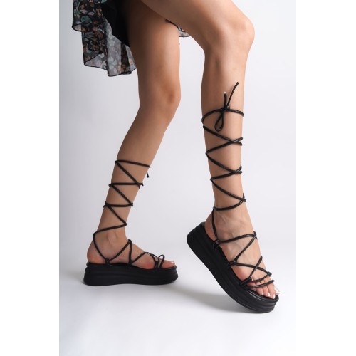 SAMANTHA Bilekten Bağlamalı Ortopedik Taban Kadın Terlik CST - Siyah