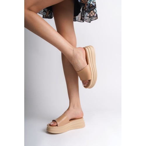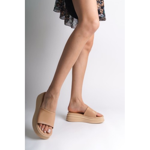 ALICE Düz Topuklu Kalın ve Ortopedik Taban Kadın Terlik CTT - Ten