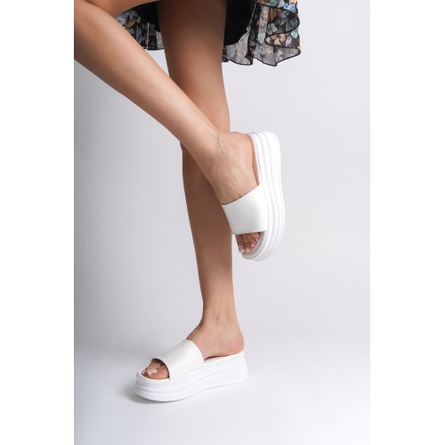 ALICE Düz Topuklu Kalın ve Ortopedik Taban Kadın Terlik CBT - Beyaz
