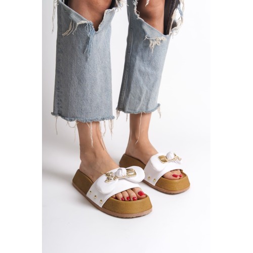 DILA Kalın ve Ortopedik Taban Ayıcıklı Saten Kadın Terlik SKT - Beyaz
