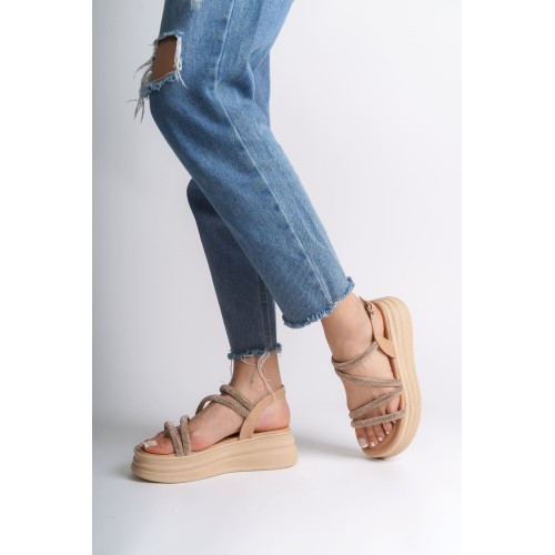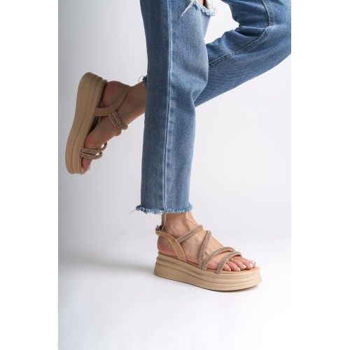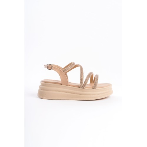 RILEY İnce Tokalı Taşlı Şeritli Ortopedik Taban Kadın Sandalet CTT - Ten