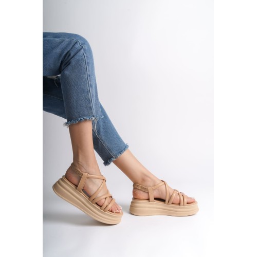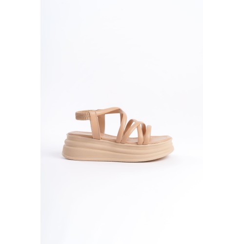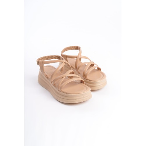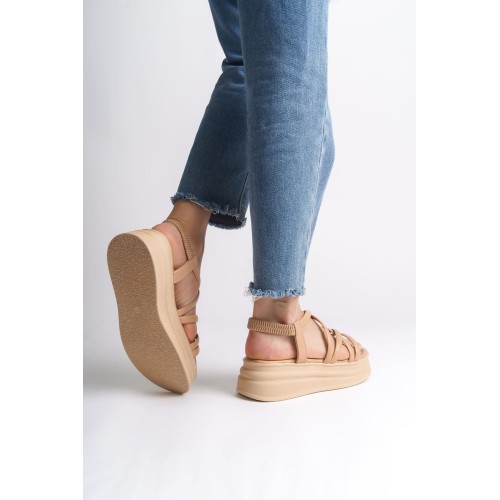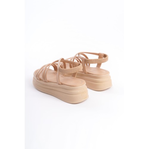 BELLA Lastikli Şerit Detaylı Ortopedik Taban Kadın Sandalet CTT - Ten