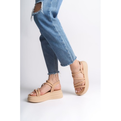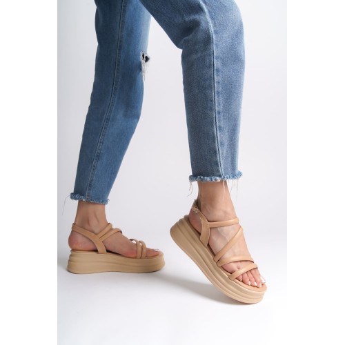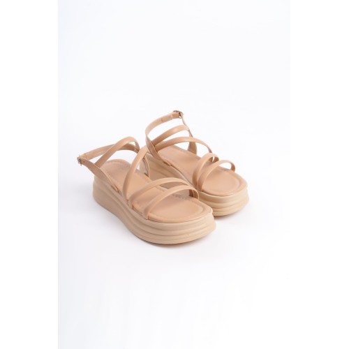 NATALIE İnce Tokalı Şerit Detaylı Ortopedik Taban Kadın Sandalet CTT - Ten