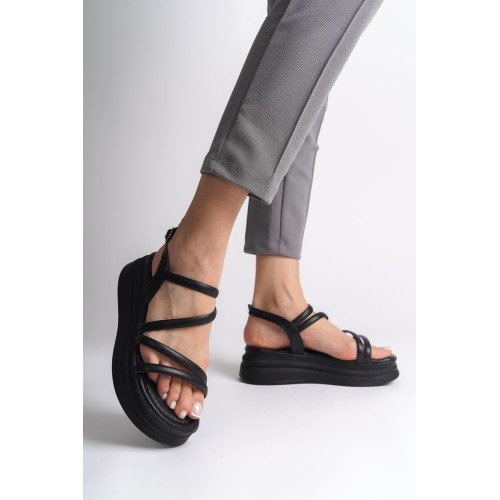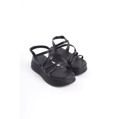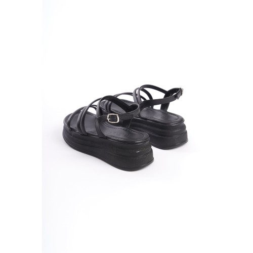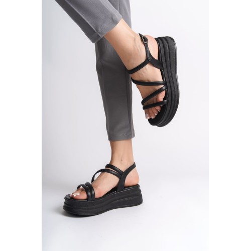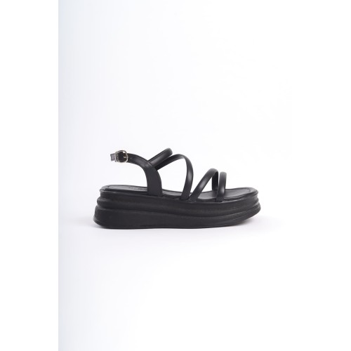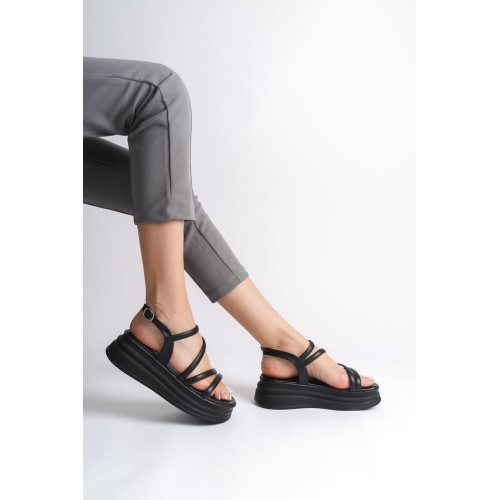 NATALIE İnce Tokalı Şerit Detaylı Ortopedik Taban Kadın Sandalet CST - Siyah