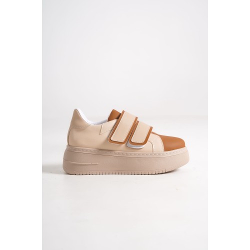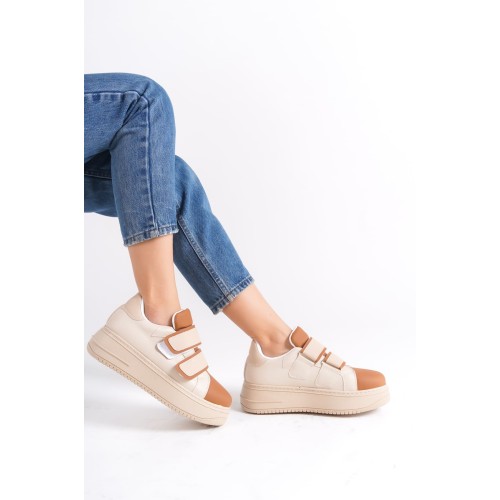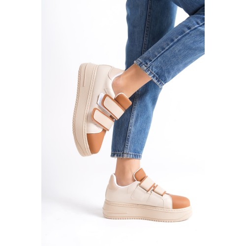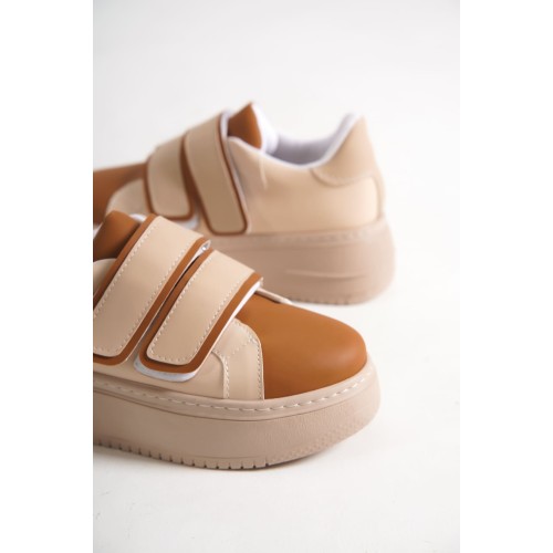 VALENCIA Bağcıksız Cırt Cırtlı Ortopedik Taban Kadın Sneaker Spor Ayakkabı CTT - Ten/Kahve