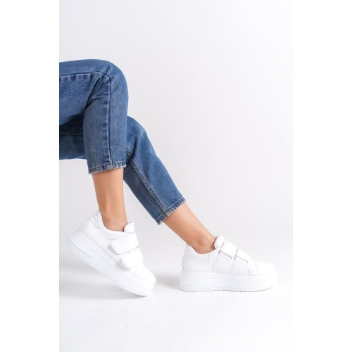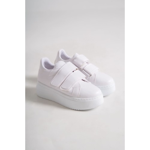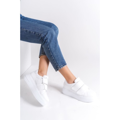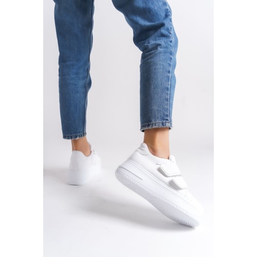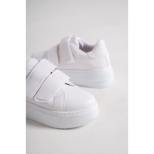 VALENCIA Bağcıksız Cırt Cırtlı Ortopedik Taban Kadın Sneaker Spor Ayakkabı CBT - Beyaz