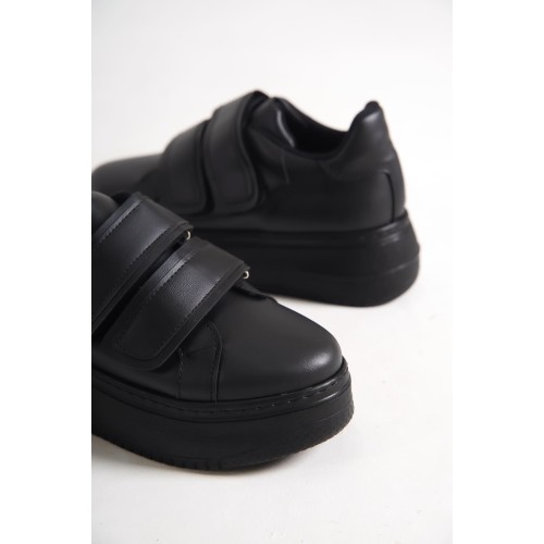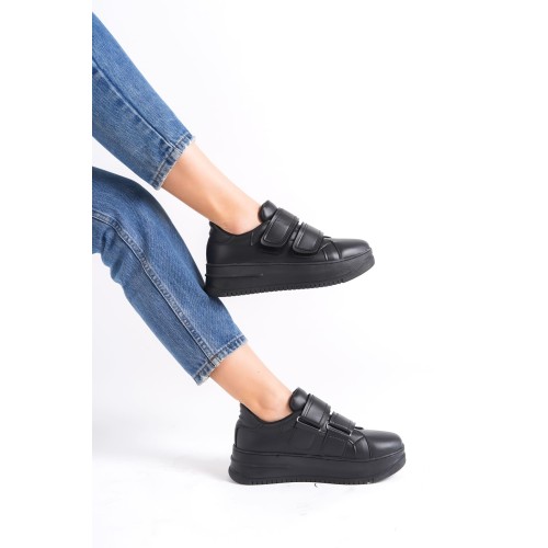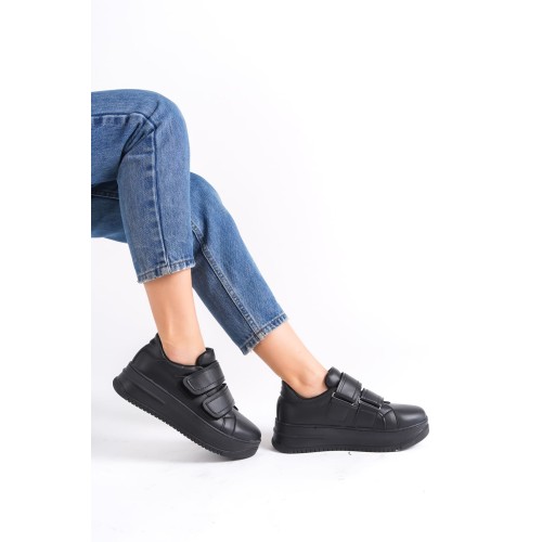 VALENCIA Bağcıksız Cırt Cırtlı Ortopedik Taban Kadın Sneaker Spor Ayakkabı CST - Siyah