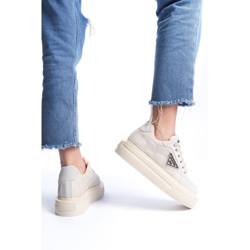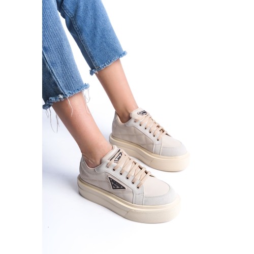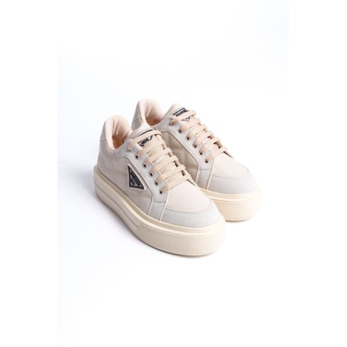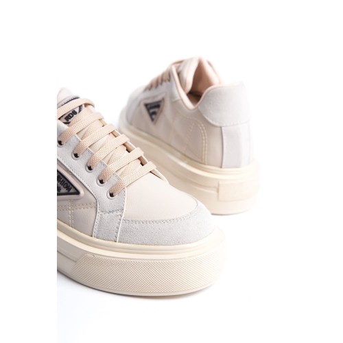 PRAG Bağcıklı Ortopedik Taban Desenli Kadın Sneaker Spor Ayakkabı CKT - Krem
