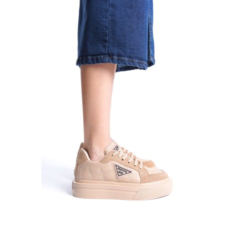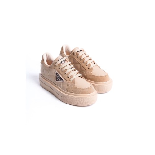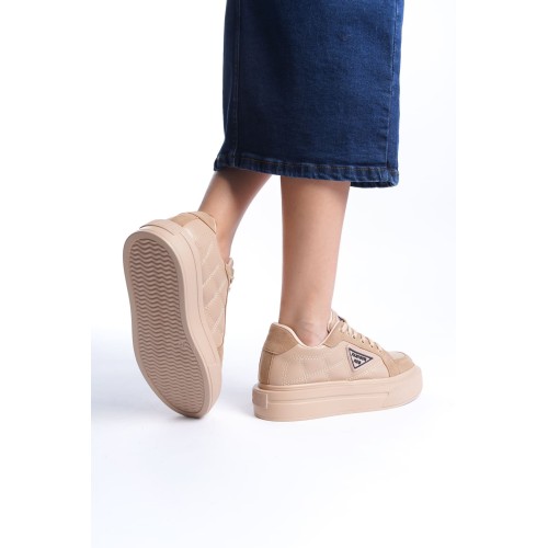 PRAG Bağcıklı Ortopedik Taban Desenli Kadın Sneaker Spor Ayakkabı CTT - Ten