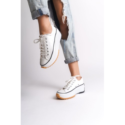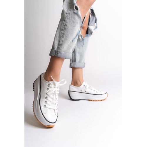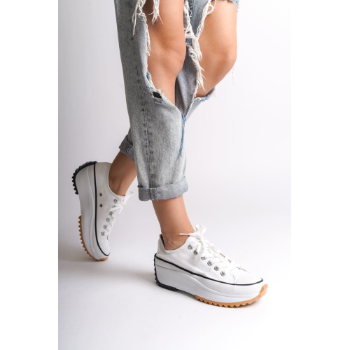 PARIS Bağcıklı Ortopedik Taban Kadın Sneaker Spor Ayakkabı TBT - Beyaz