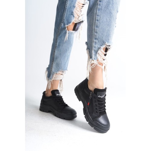 AGATHA Bağcıklı Fermuarlı Ortopedik Taban Kadın Sneaker Spor Ayakkabı CST - Siyah