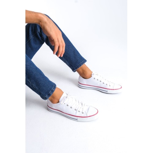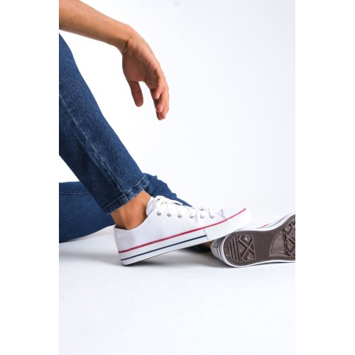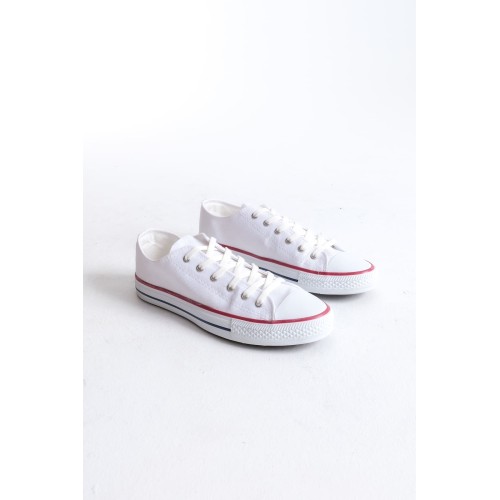 JY0422 Luke Bağcıklı Keten Kumaş Erkek Günlük Sneaker Ayakkabı KBT - Beyaz