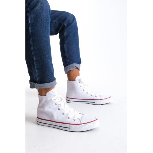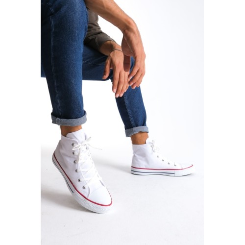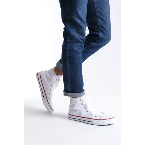 JY0423 AXE Bağcıklı Keten Kumaş Erkek Günlük Sneaker Ayakkabı KBT - Beyaz