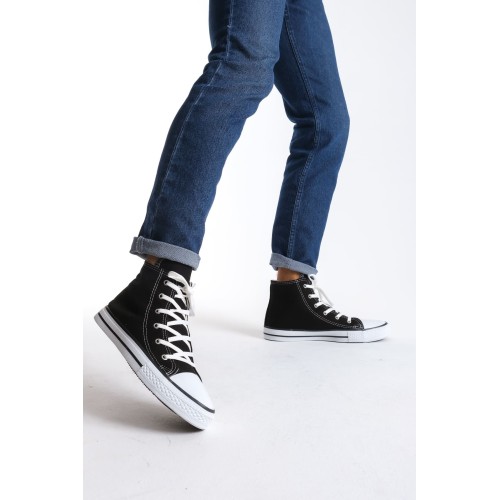 JY0423 AXE Bağcıklı Keten Kumaş Erkek Günlük Sneaker Ayakkabı KBT - Siyah