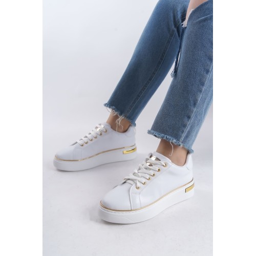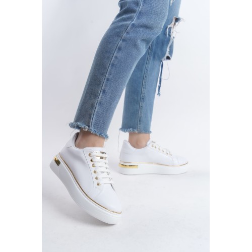 MINA Bağcıklı Ortopedik Taban Kadın Sneaker Spor Ayakkabı CBT - Beyaz/Altın