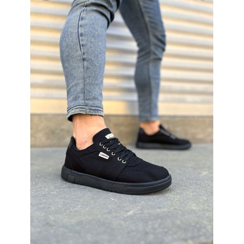 JY0118 REX Bağcıklı Keten Kumaş Erkek Günlük Sneaker Ayakkabı KST - Siyah