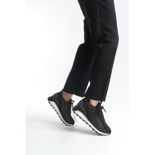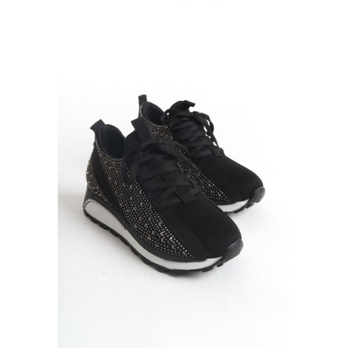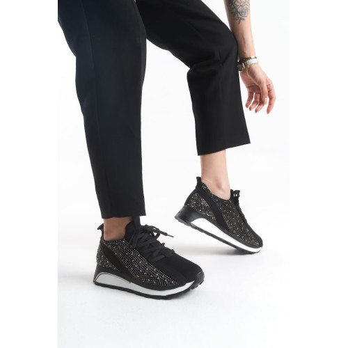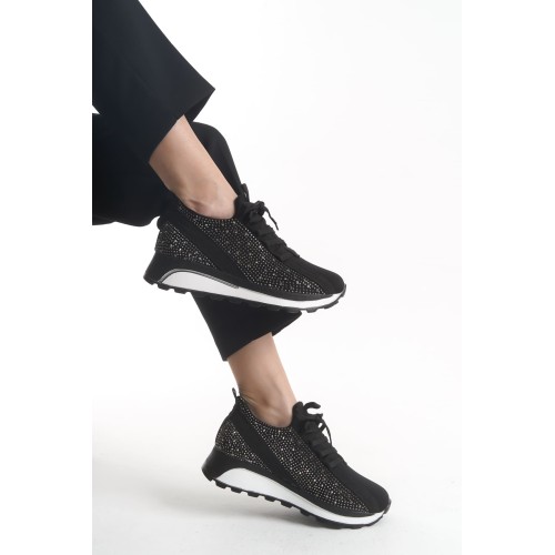 ALYA Bağcıklı Ortopedik Taban Taşlı Kadın Sneaker Spor Ayakkabı CBT - Siyah