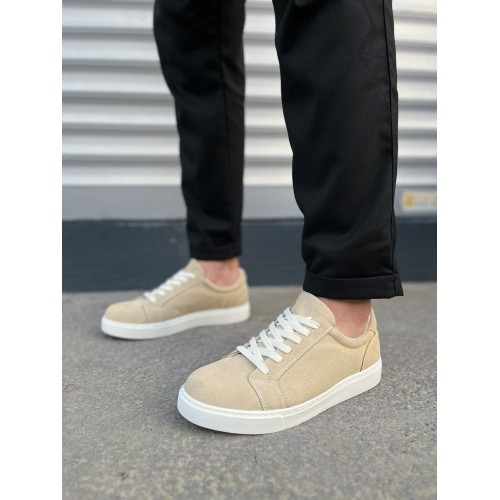 JY165 Elite Bağcıklı Süet Erkek Günlük Sneaker Ayakkabı SBT - Krem