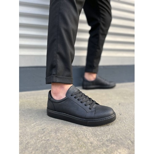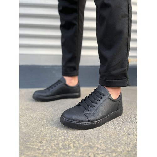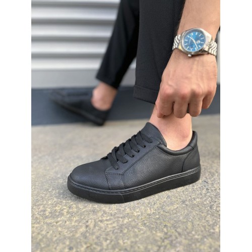 JY165 Elite Bağcıklı Cilt Erkek Günlük Sneaker Ayakkabı CST - Siyah
