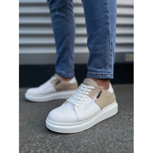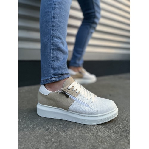 JY155 Warrior Bağcıklı ve Fermuarlı Cilt Süet Erkek Günlük Sneaker Ayakkabı CSBT - Beyaz/Krem