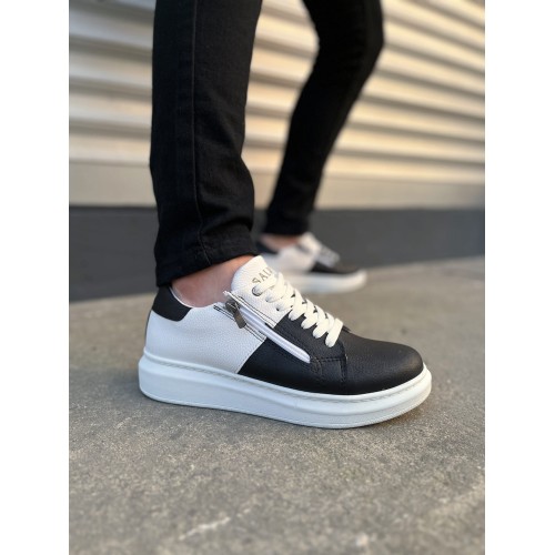JY155 Warrior Bağcıklı ve Fermuarlı Cilt Erkek Günlük Sneaker Ayakkabı CBT - Beyaz/Siyah