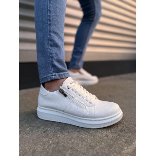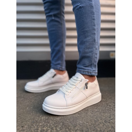 JY155 Warrior Bağcıklı ve Fermuarlı Cilt Erkek Günlük Sneaker Ayakkabı CBT - Beyaz