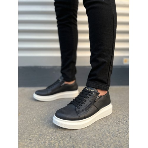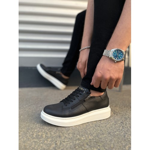 JY155 Warrior Bağcıklı ve Fermuarlı Cilt Erkek Günlük Sneaker Ayakkabı CBT - Siyah