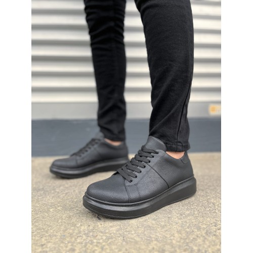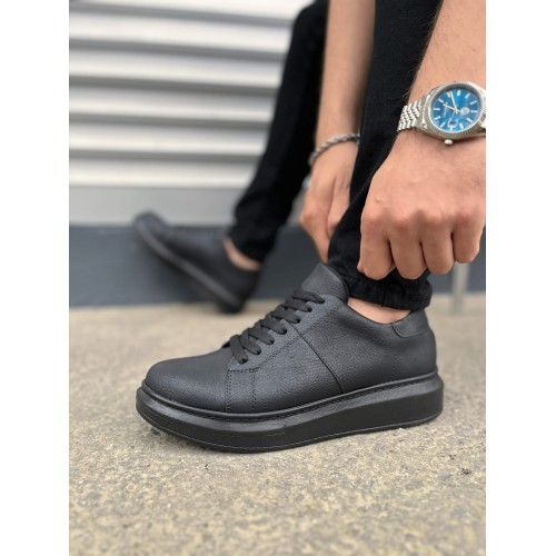 JY151 Boost Bağcıklı Cilt Erkek Günlük Sneaker Ayakkabı CST - Siyah
