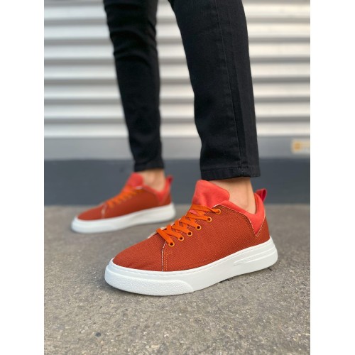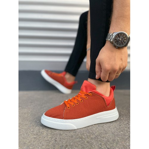 JY204 Flex Bağcıklı Keten Kumaş Erkek Günlük Sneaker Ayakkabı KBT - Turuncu