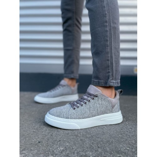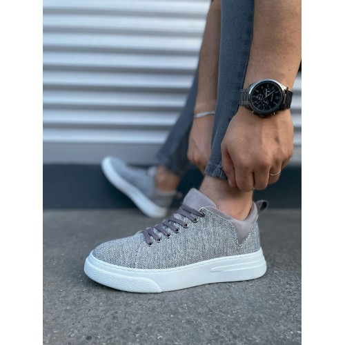 JY204 Flex Bağcıklı Keten Kumaş Erkek Günlük Sneaker Ayakkabı KBT - Gri