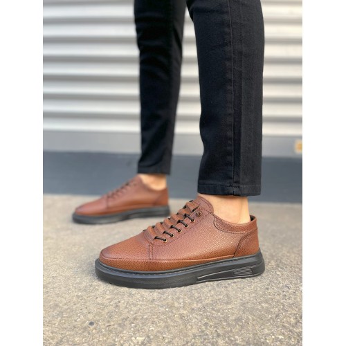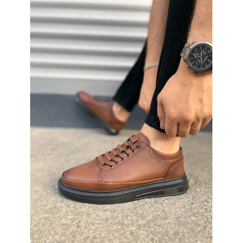 JY0535 Prime Bağcıklı Cilt Erkek Günlük Sneaker Ayakkabı CST - Taba