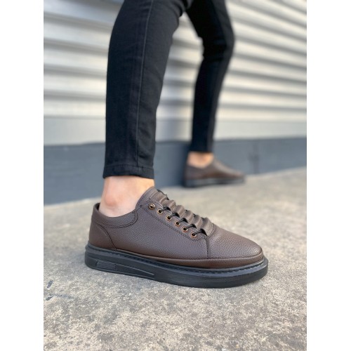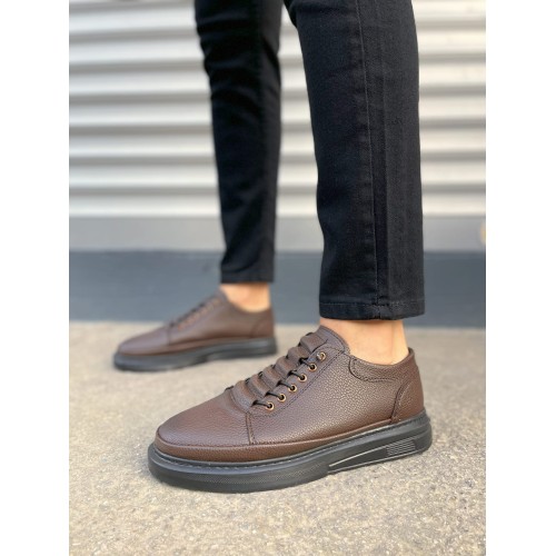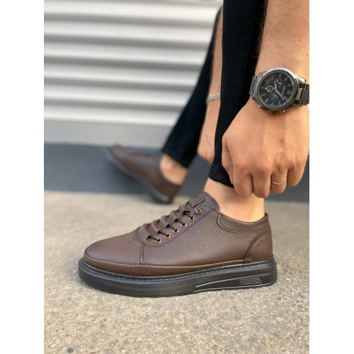 JY0535 Prime Bağcıklı Cilt Erkek Günlük Sneaker Ayakkabı CST - Kahverengi