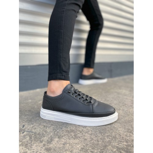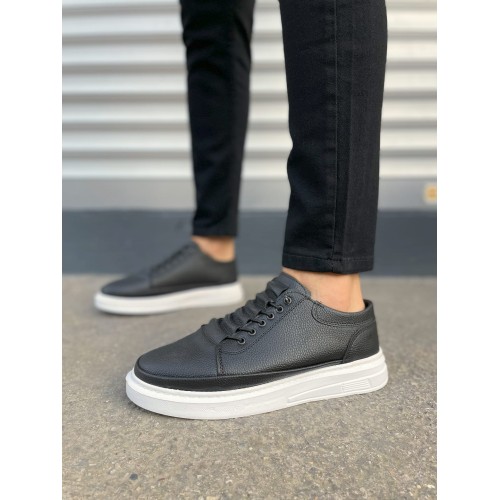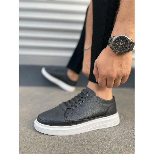 JY0535 Prime Bağcıklı Cilt Erkek Günlük Sneaker Ayakkabı CBT - Siyah
