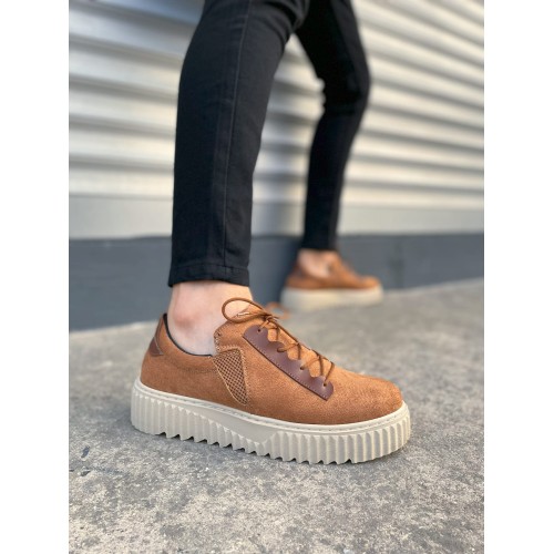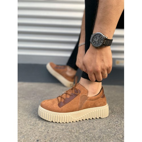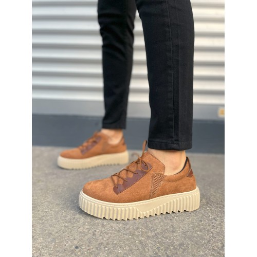 JY502 Bold Bağcıklı Süet Erkek Günlük Sneaker Ayakkabı SKT - Taba
