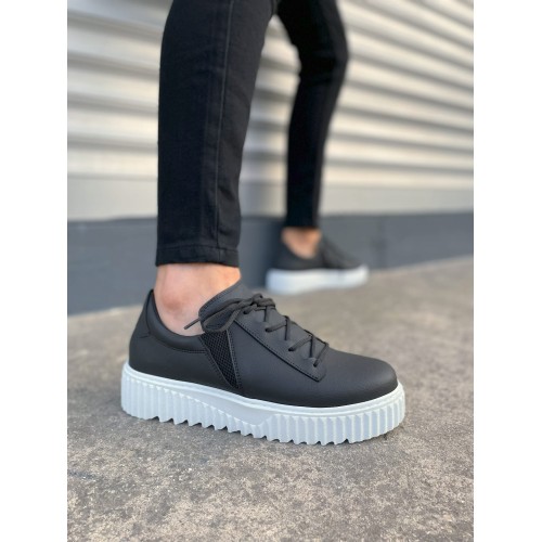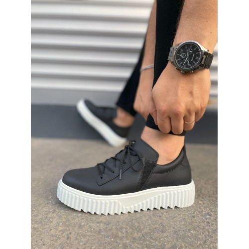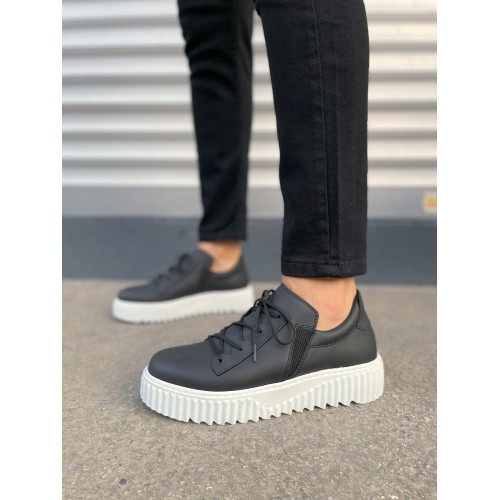 JY502 Bold Bağcıklı Cilt Erkek Günlük Sneaker Ayakkabı CBT - Siyah