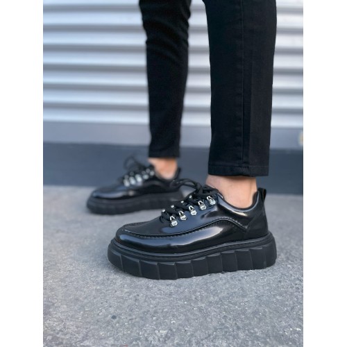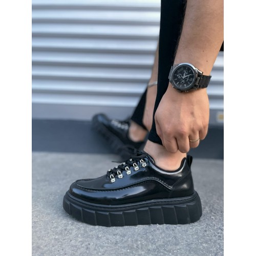 JY010 Cloud Bağcıklı Rugan Erkek Günlük Sneaker Ayakkabı RST - Siyah