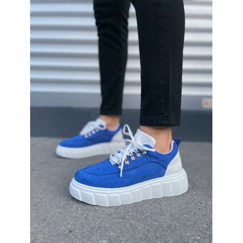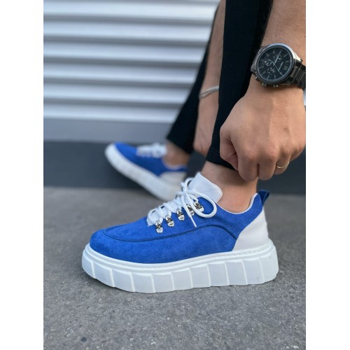 JY010 Cloud Bağcıklı Süet Erkek Günlük Sneaker Ayakkabı SBT - Mavi/Beyaz