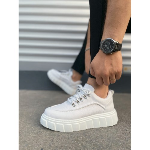 JY010 Cloud Bağcıklı Cilt Erkek Günlük Sneaker Ayakkabı CBT - Beyaz