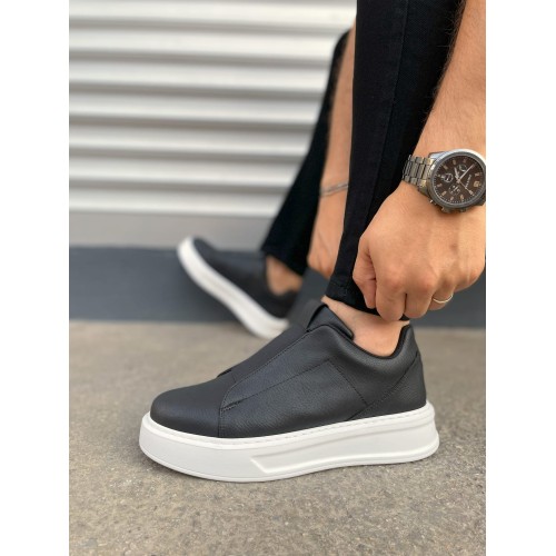 JY007 Alba Bağcıksız Cilt Erkek Günlük Sneaker Ayakkabı CBT Siyah