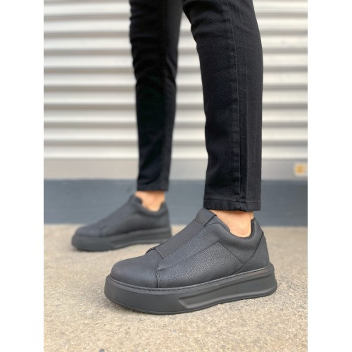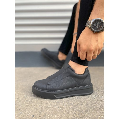 JY007 Alba Bağcıksız Cilt Erkek Günlük Sneaker Ayakkabı CST Siyah