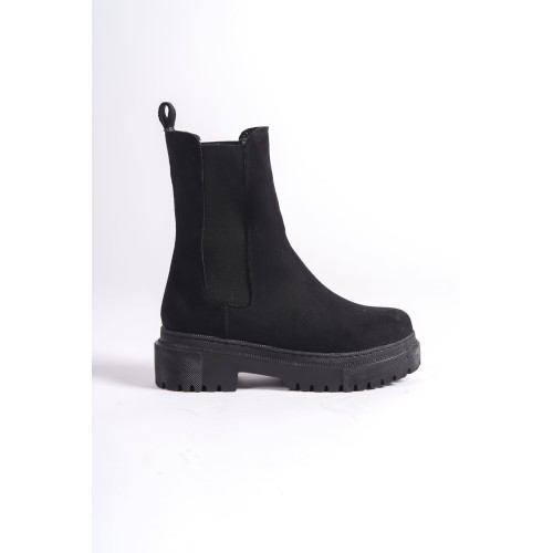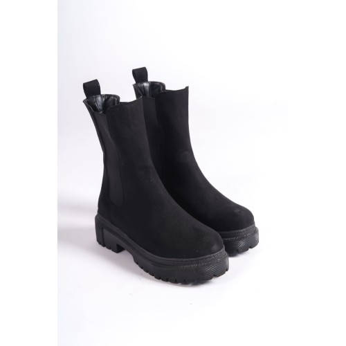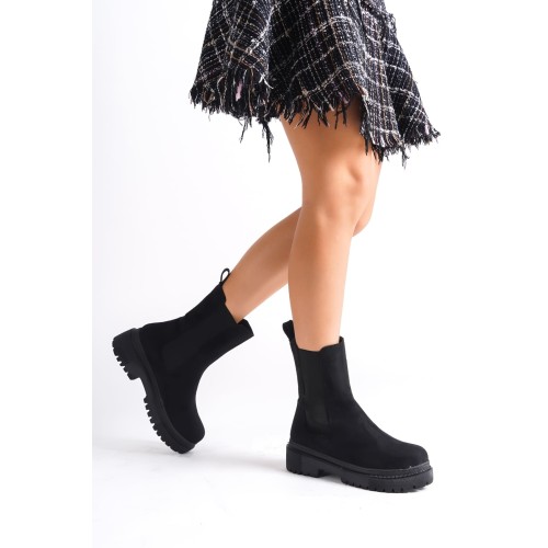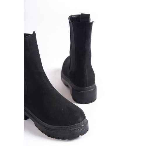 LORA Bağcıksız Lastikli Süet Ortopedik Taban Kadın Bot SST - Siyah