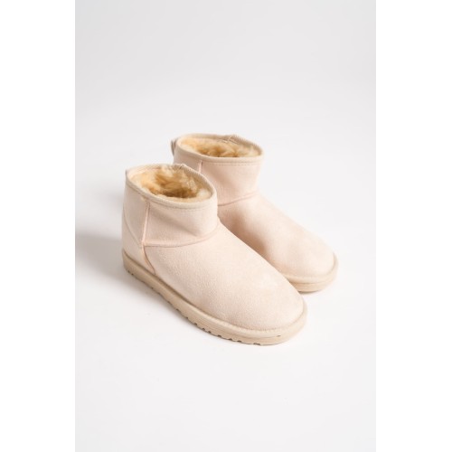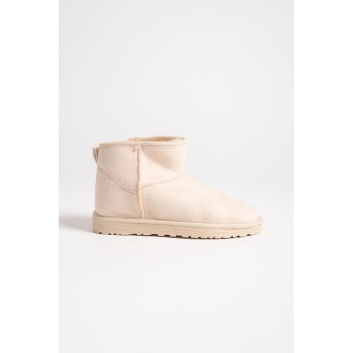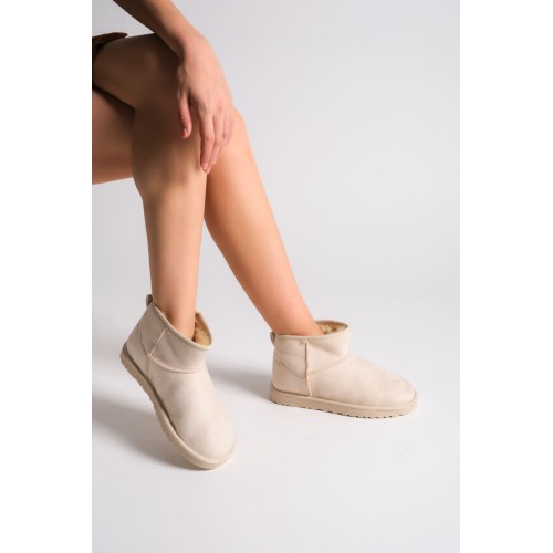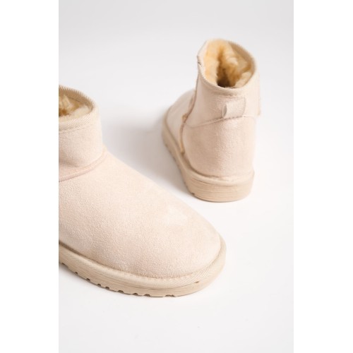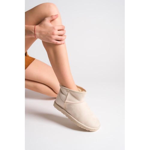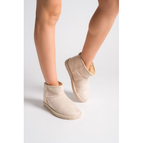 JOLIE Bağcıksız Düz Taban İçi Kürklü Kısa Süet Kadın Bot SKT - Krem
