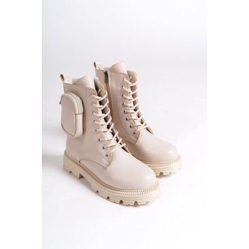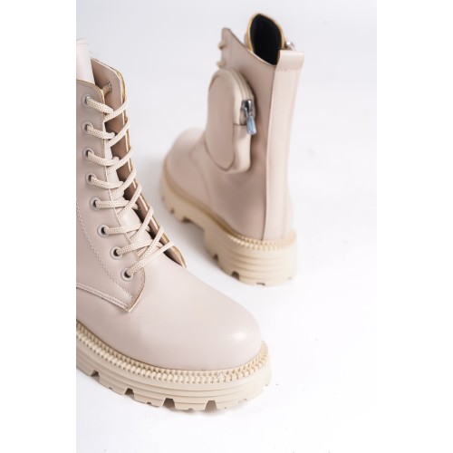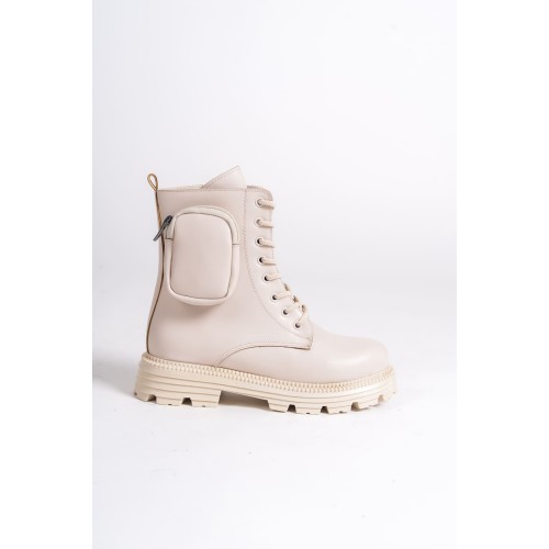 GINA Bağcıklı Fermuarlı Ortopedik Taban Çantalı Kadın Bot CKT - Krem