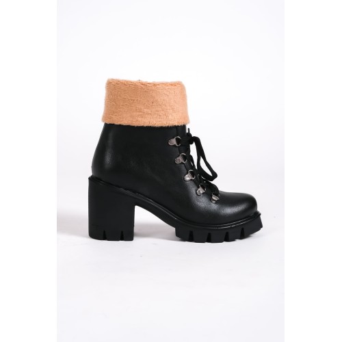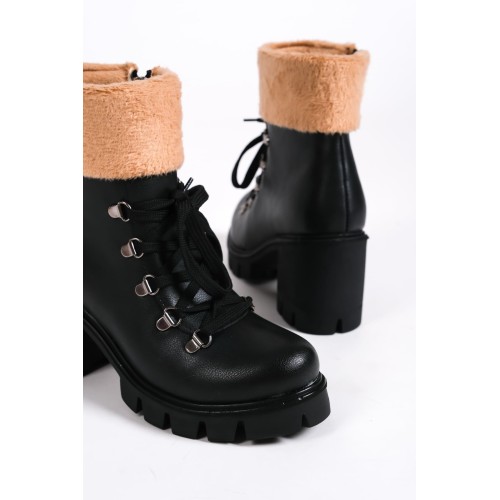 EMMA Bağcıklı Fermuarlı Ortopedik Taban Topuklu Kürk DetaylıKadın Bot CST - Siyah